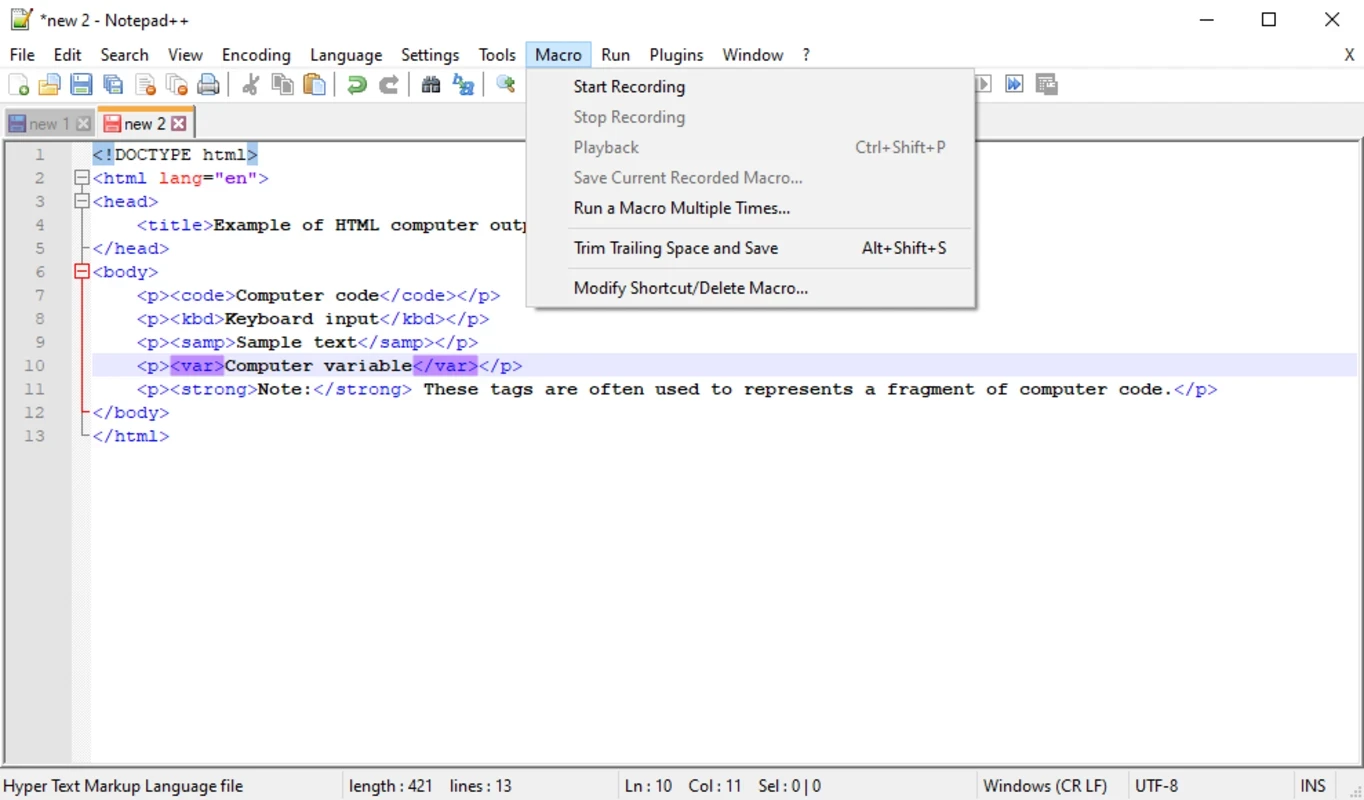 Ofrece compatibilidad total con más de 80 lenguajes de programación para que la edición de código sea fluida y rápida. Entre los lenguajes compatibles se encuentran C, Java, XML, HTML, PHP, JavaScript, archivos de recursos RC, makefiles, archivos de arte ASCII, Doxygen, archivos INI, ASP, archivos VB/VBS, SQL, Objective-C, CSS, Pascal, Perl, Python, etc.